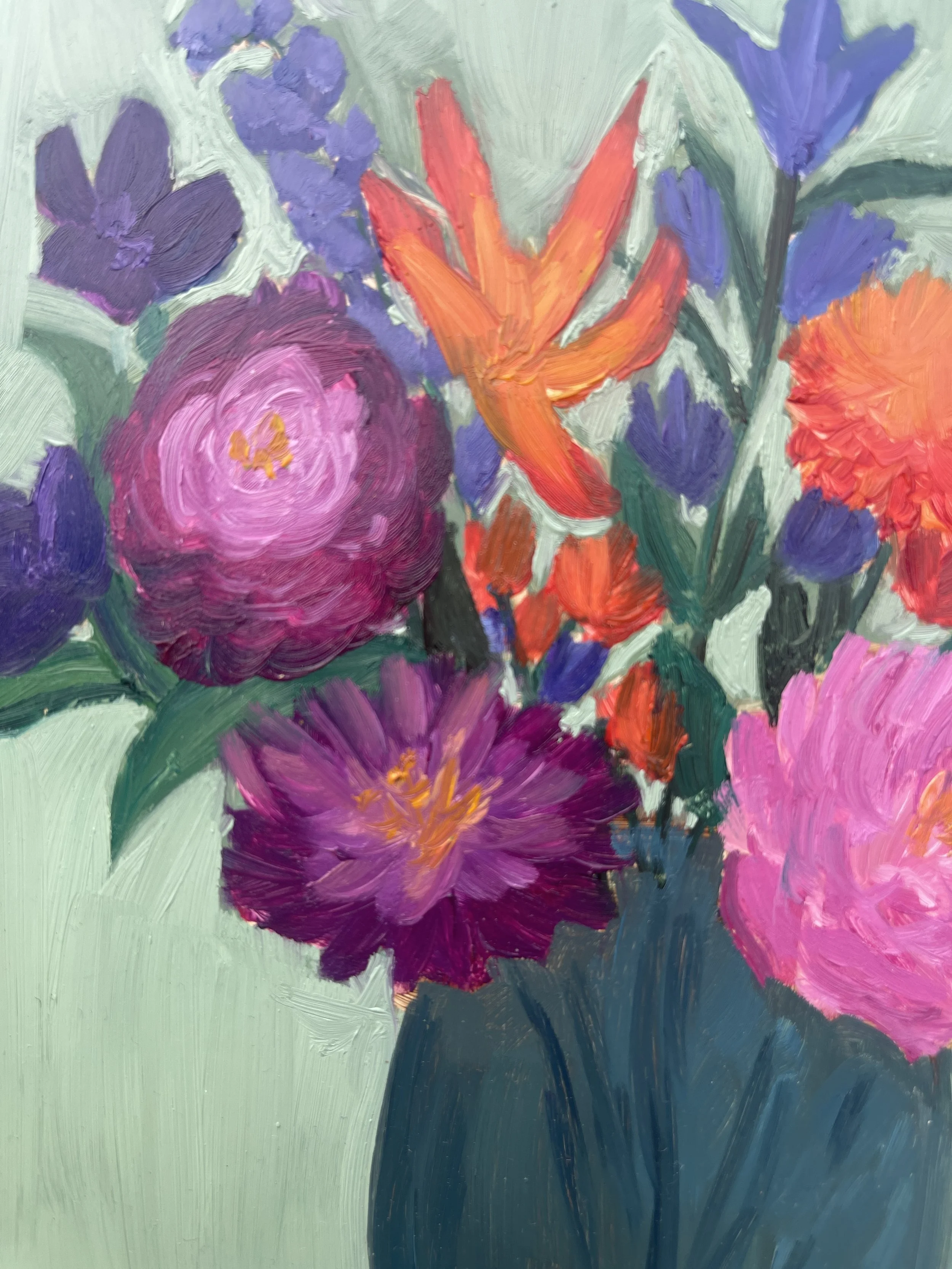 I love the way the oils capture the rugged terrain along with its accompanying prickly friends perched on top.